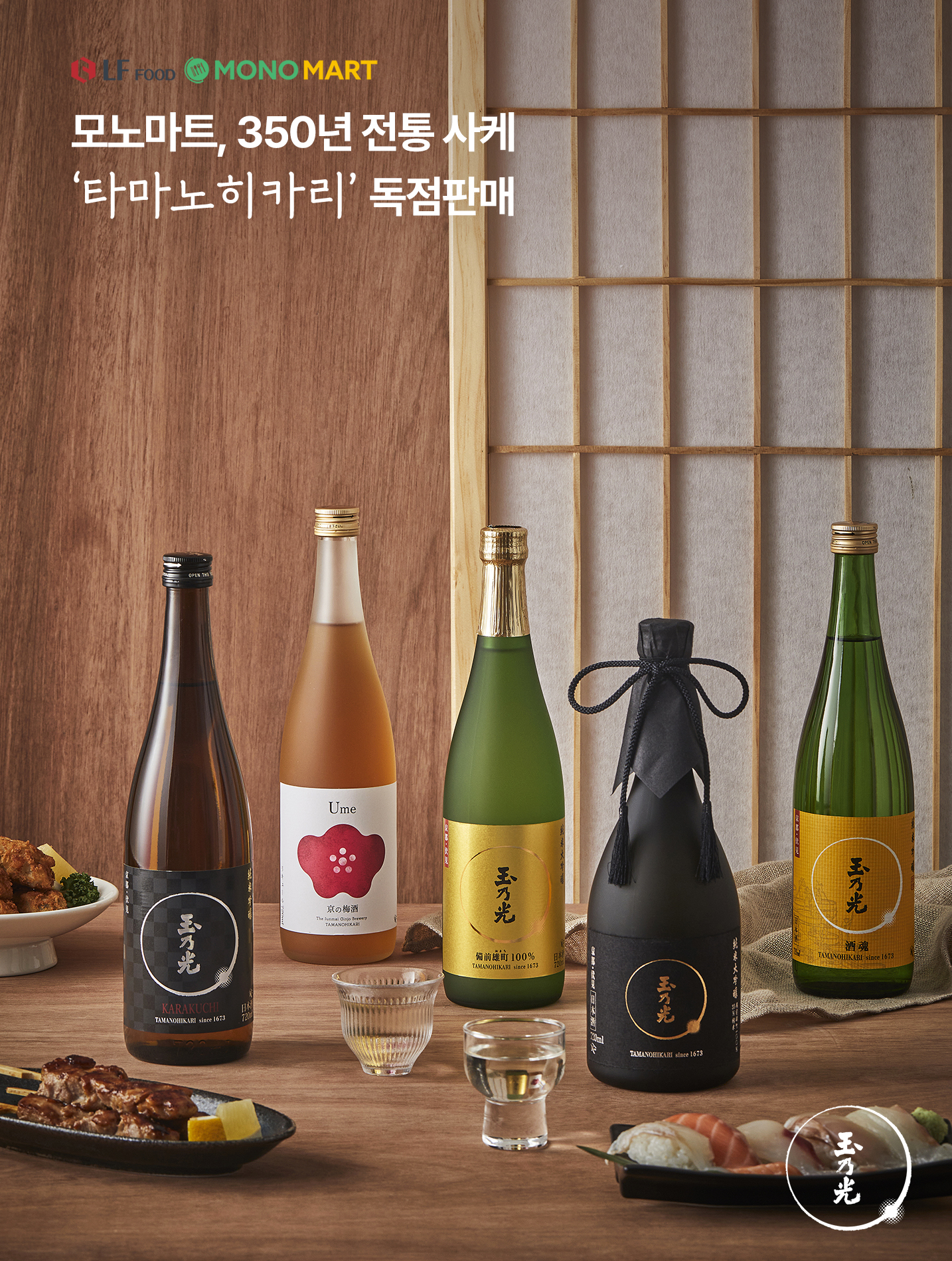 LF푸드의 글로벌 식자재 마켓, 모노마트가 350년 전통 사케 ‘타마노히카리’를 국내 독점 판매하며 사케의 대중적인 저변 확대에 나선다.