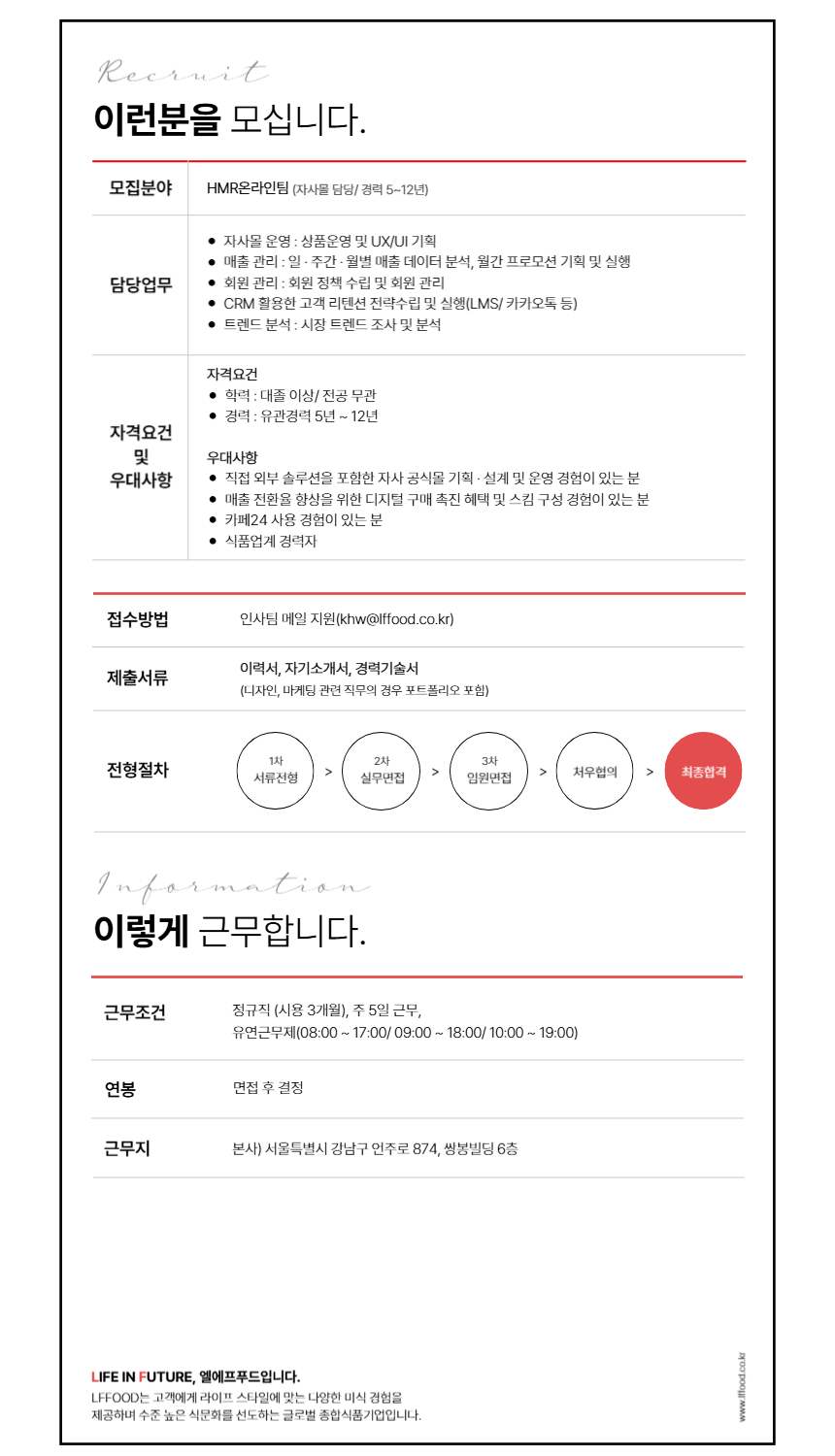 LF푸드의 미래와 함께 할 인재를 모집합니다.